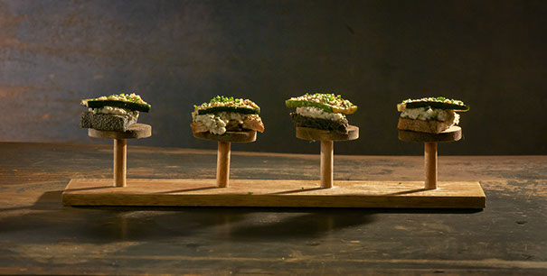 CHEF HUBENOV’S own production CASHEW RICOTTA with spinach, TOPED WTH A SPICY cured EGG YOLK