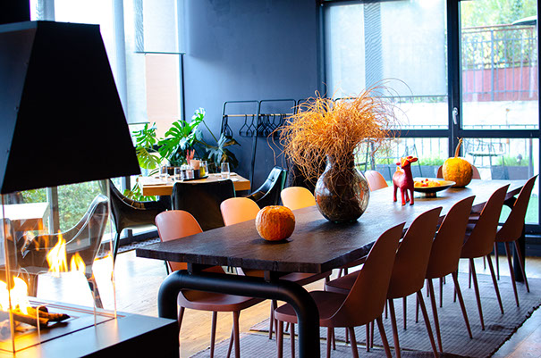 We have a large green garden with 70 seats and our indoor salon has 80 seats.